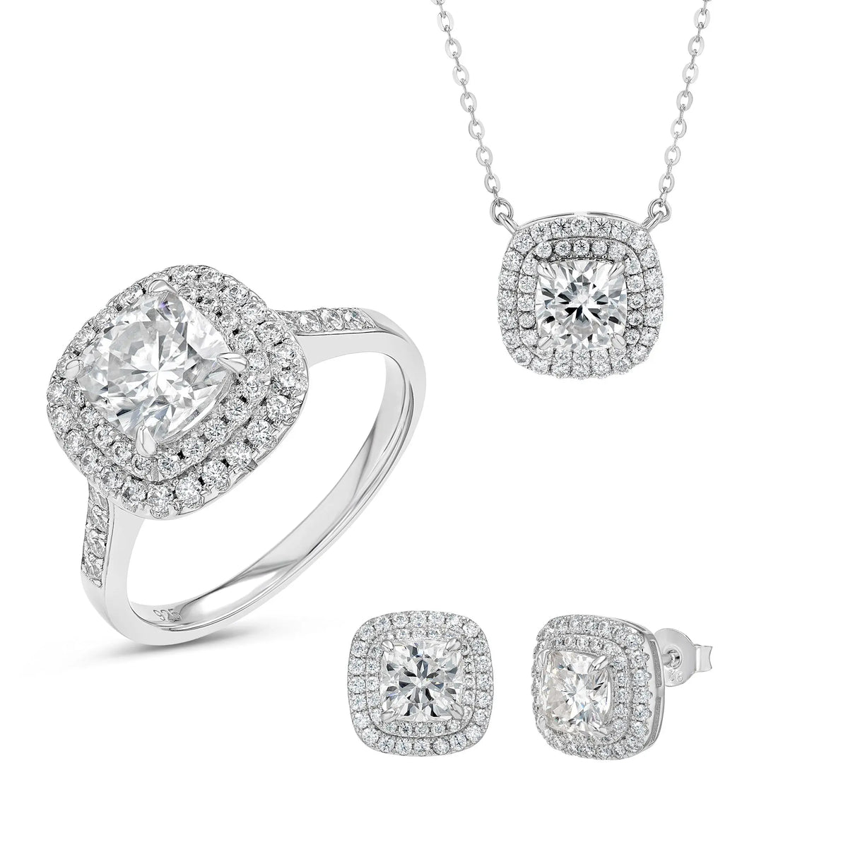 Diamond & Moissanite Cushion Cut Jewellery Set