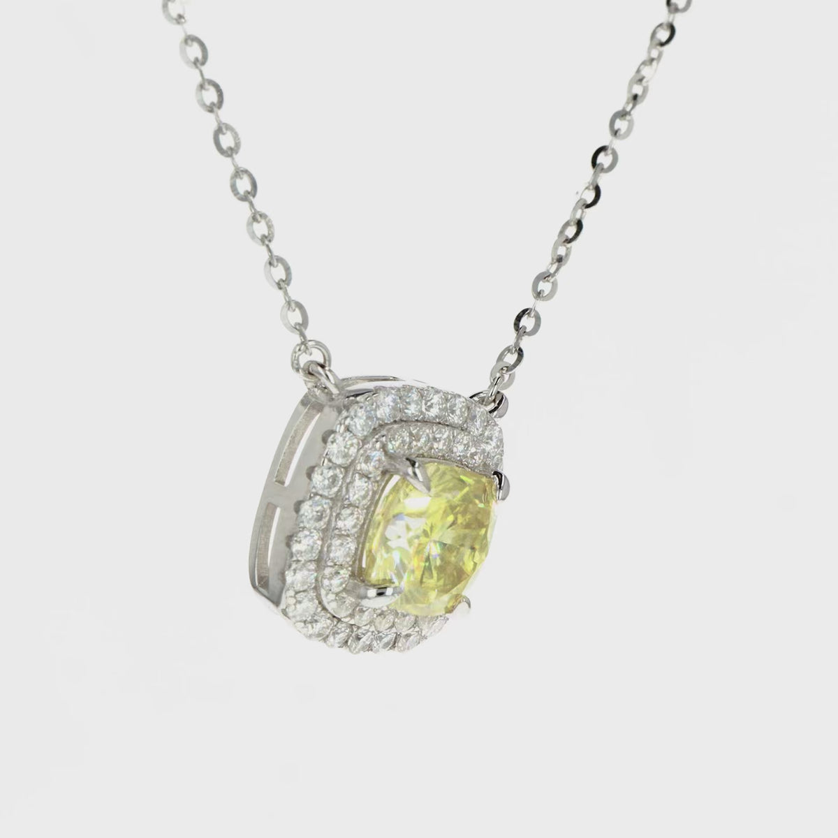 Yellow Sapphire & Moissanite Cushion Halo Pendant