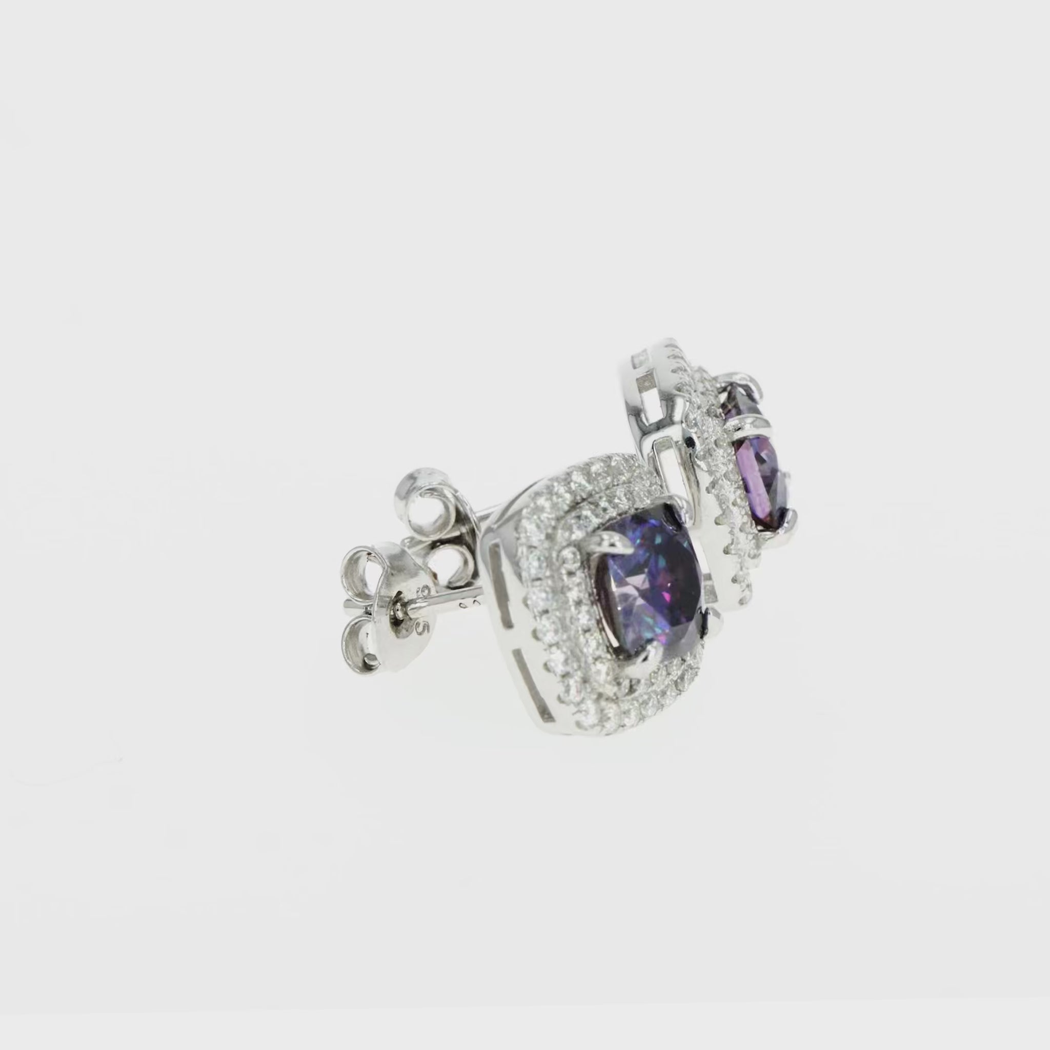 A: These stunning earrings showcase a combination of authentic diamonds paired with premium moissanite stones in a complementary arrangement.