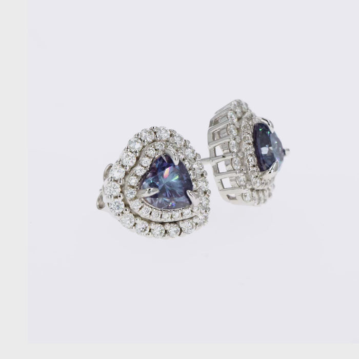 Lab Grown Diamonds Handmade Heart Cut Blue Gemstone and Moissanite Diamond Inspired Double Halo Earring