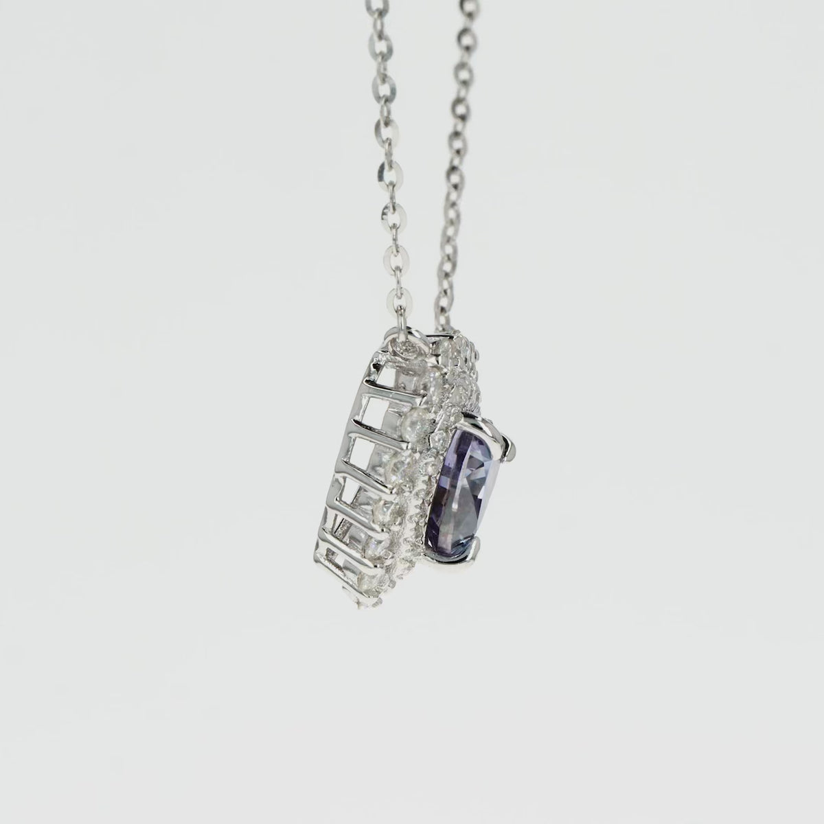 Lab Grown Diamonds Handmade Heart Cut Blue Gemstone and Moissanite Diamond Inspired Double Halo Necklace