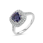 Lab Grown Diamonds Handmade Cushion Cut Purple Gemstone and Moissanite Diamond Inspired Double Halo Ring