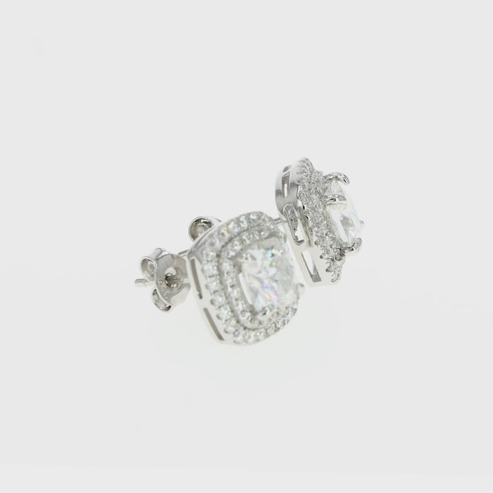 Diamond Inspired & Moissanite Cushion Halo Earrings