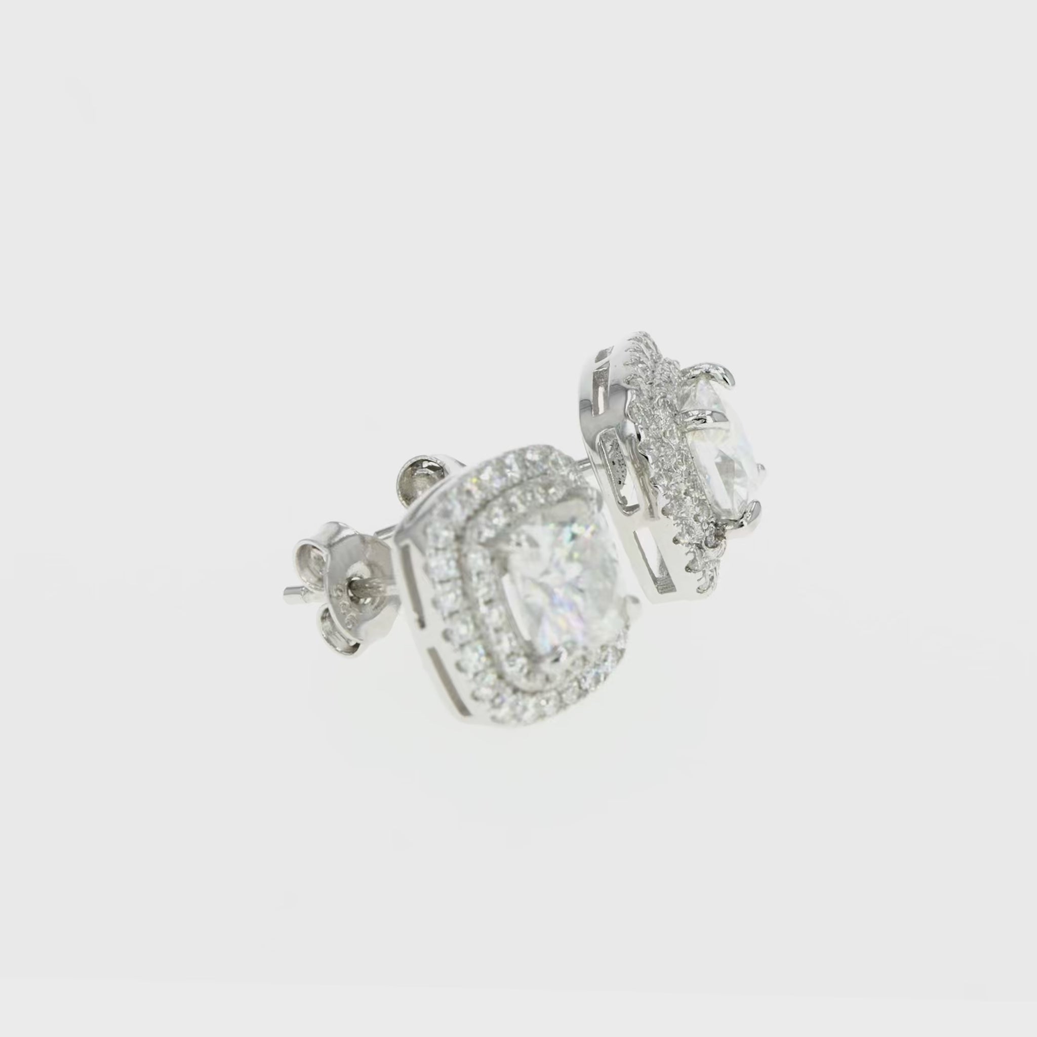 Cushion Cut White Gemstone and Moissanite Diamond Inspired Double Halo Earring