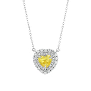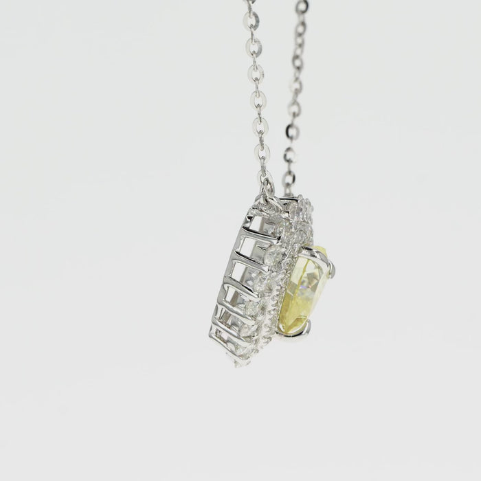 Lab Grown Diamonds Handmade Heart Cut Yellow Gemstone and Moissanite Diamond Inspired Double Halo Necklace